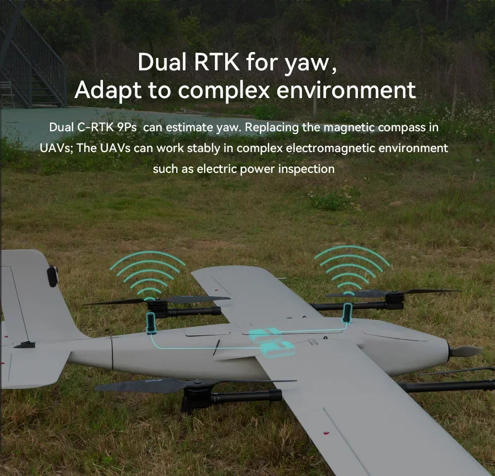 C-RTK 9Psは、航空機用と基地局用の2つのC-RTK 9Psモジュールを使用する4つ星リアルタイムGNSSシステムです。また、UAVの磁気コンパスを置き換えるヨー用のデュアルGPSをサポートし、UAVが複雑な磁場環境に適応できるようにします。