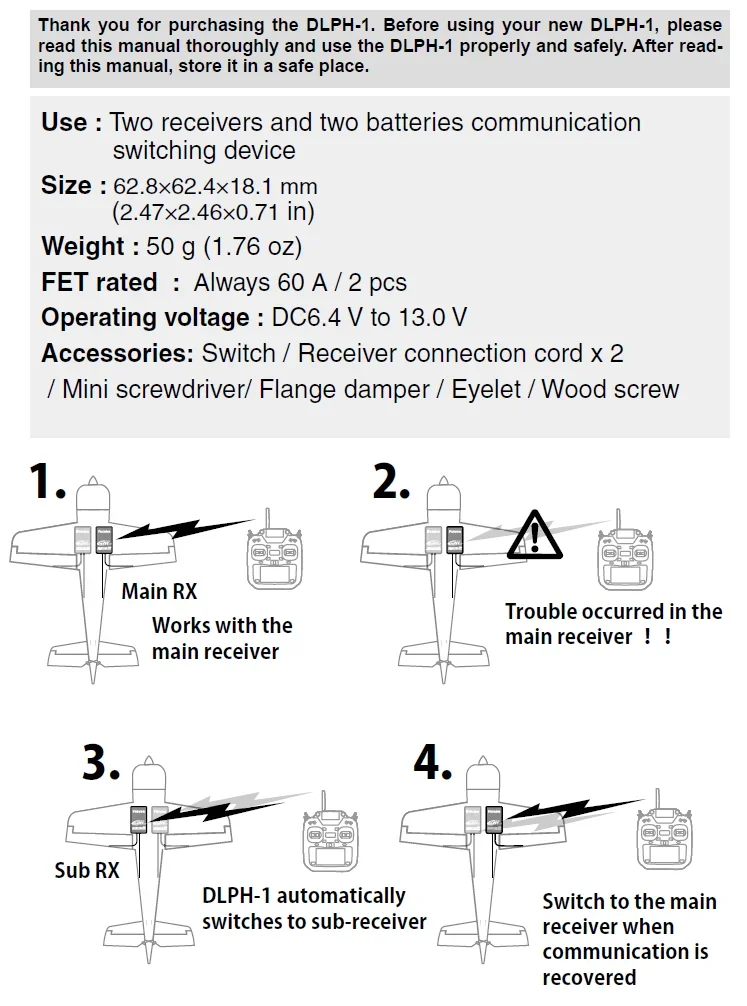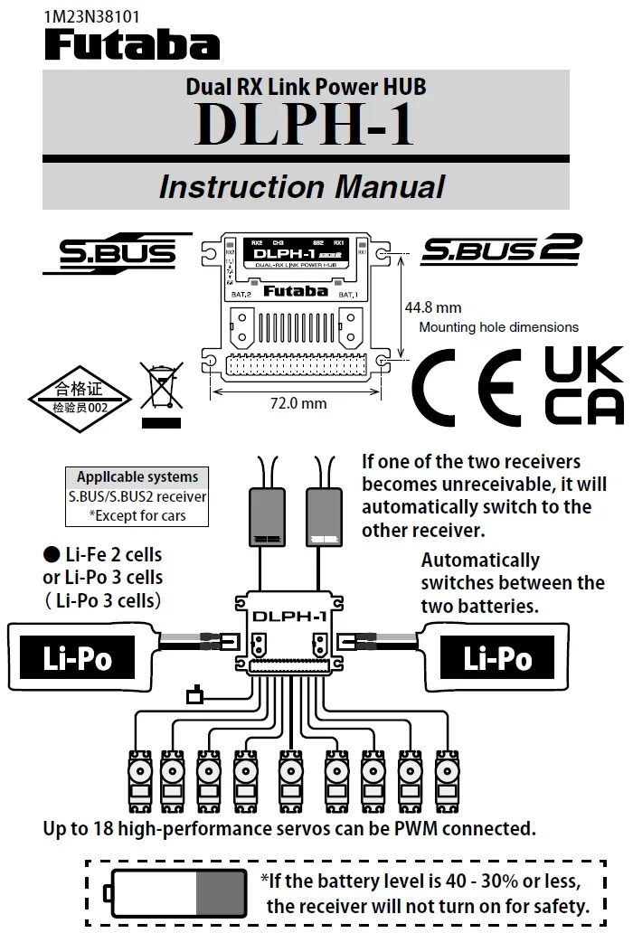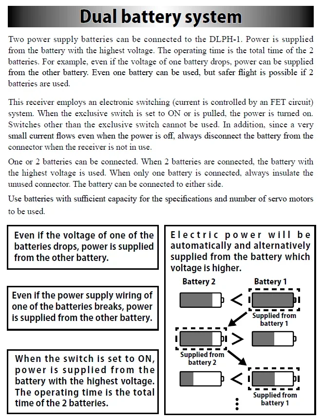 FUTABA DLPH-2 デュアルチャンネル受信電源ハブ 18チャンネル電源分配ボード Turbojet RC Dorne固定翼航空機用