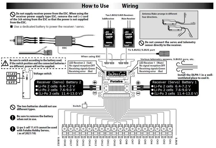 FUTABA DLPH-2 デュアルチャンネル受信電源ハブ 18チャンネル電源分配ボード Turbojet RC Dorne固定翼航空機用 S25d9684161458