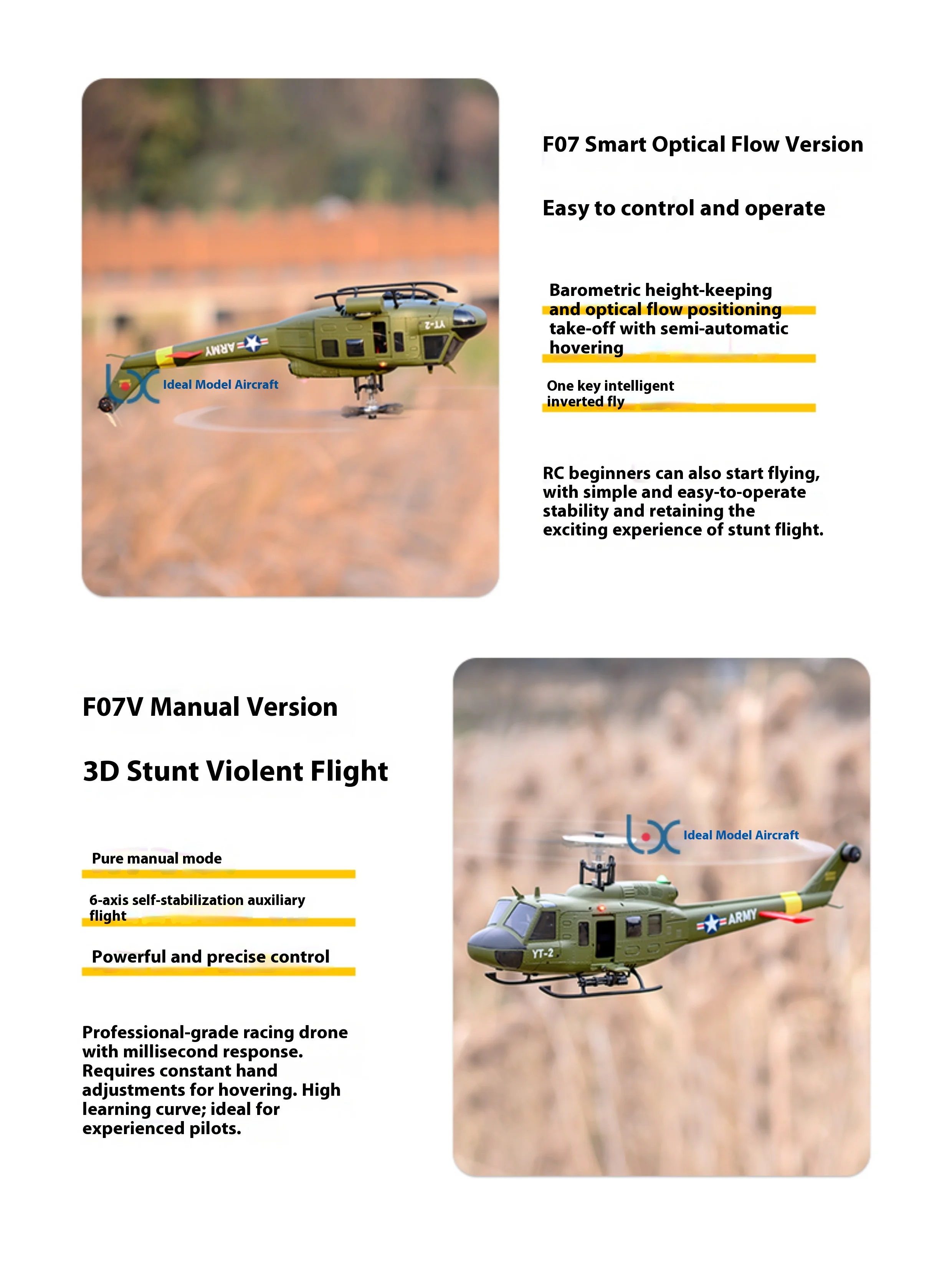Yuxiang F07 インテリジェントバージョン/F07V マニュアルバージョン UH1 ヒューイ ラジコンヘリコプター 3D スタントヘリコプター S25o0033874044