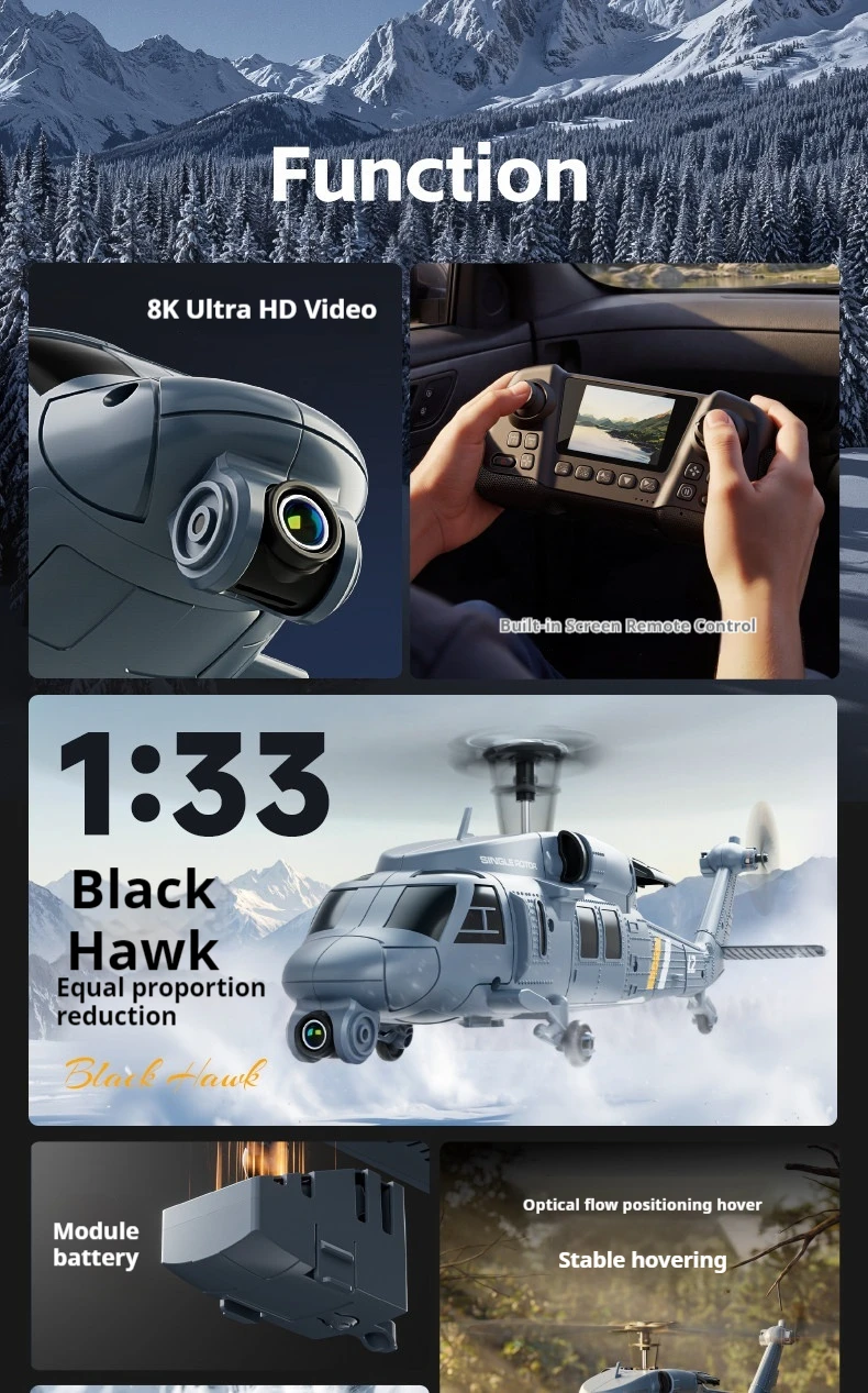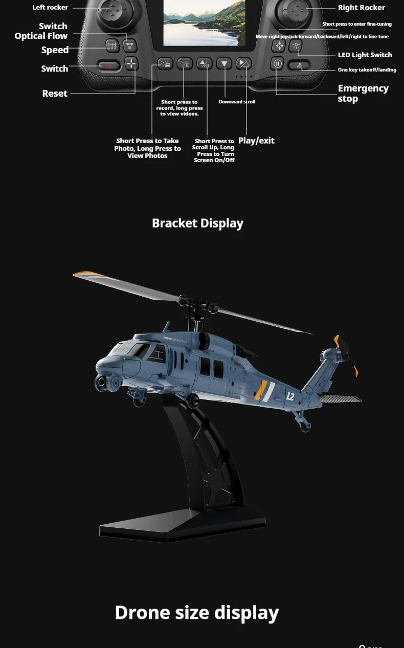 4DRC L2 アパッチ軍用リモコンヘリコプター 6軸ジャイロ シングルローター 8K 空撮オプティカルフロー スクリーン付きリモコン 男の子へのギフト S25o1684990147