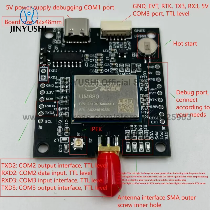 EM-980D5 UM980 GNSS RTKモジュール cmレベル測位ベースローバー受信機アンテナUSB-Cボード GPS GLONASS Beidou Galileo F9P代替品