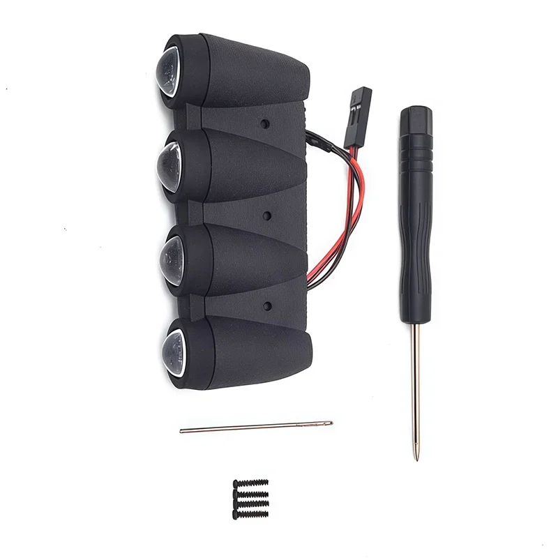 MJXRC 10303カバーライトは、耐衝撃性に優れた高強度ナイロンシェルと、光透過性に優れた射出成形アクリルレンズを備えています。慎重に購入してください。穴を開けるには、まず車のシェルを平らな場所に置き、次に図3に示すおおよその位置にフードライトを配置します。シェルに穴を開けます。3つの穴は取り付け穴です。大まかな位置を決めたら、配線の位置を確認します。次に、ドリルを使用して配線の位置に穴を開け、電源レシーバーの自由な経路を確保します。ワイヤーの長さが足りない場合があるため、独自のY線または延長線を用意する必要があります。