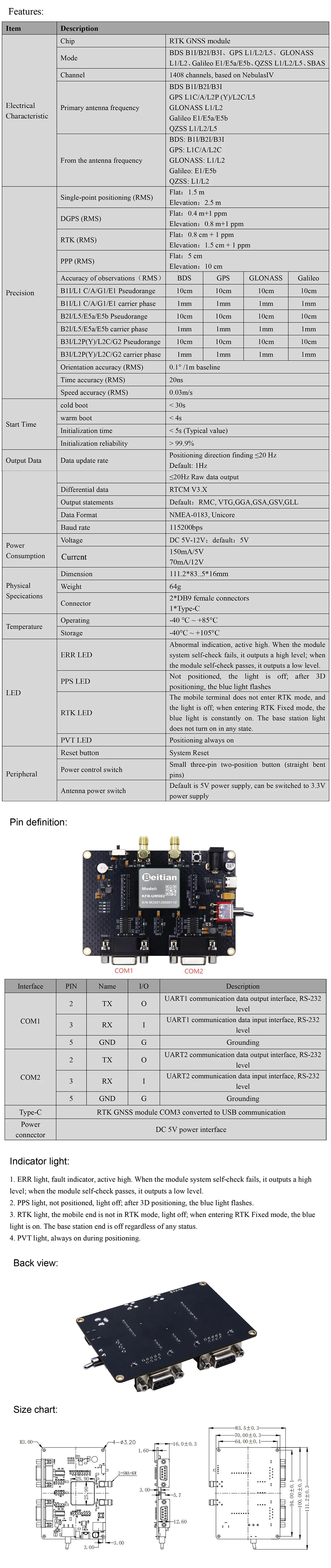 Beitian フルシステム全周波数RTK高精度開発ボード GNSS測位方向ボードカードモジュール KFB-M9N