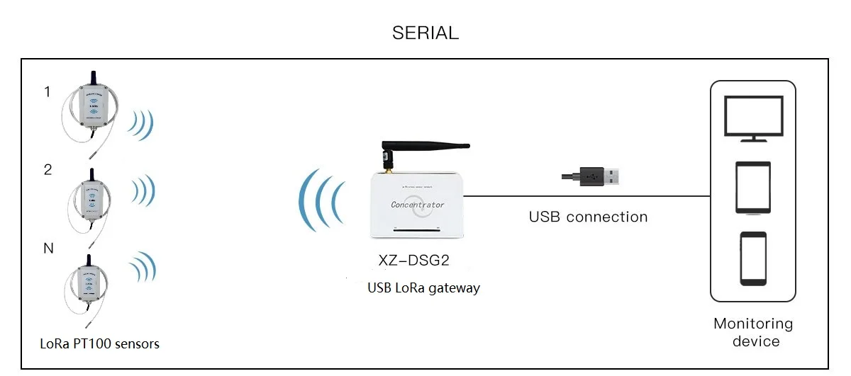 1つのLoRaイーサネット/USB/4Gゲートウェイは、100個以上のLoRaセンサーと連携できます。