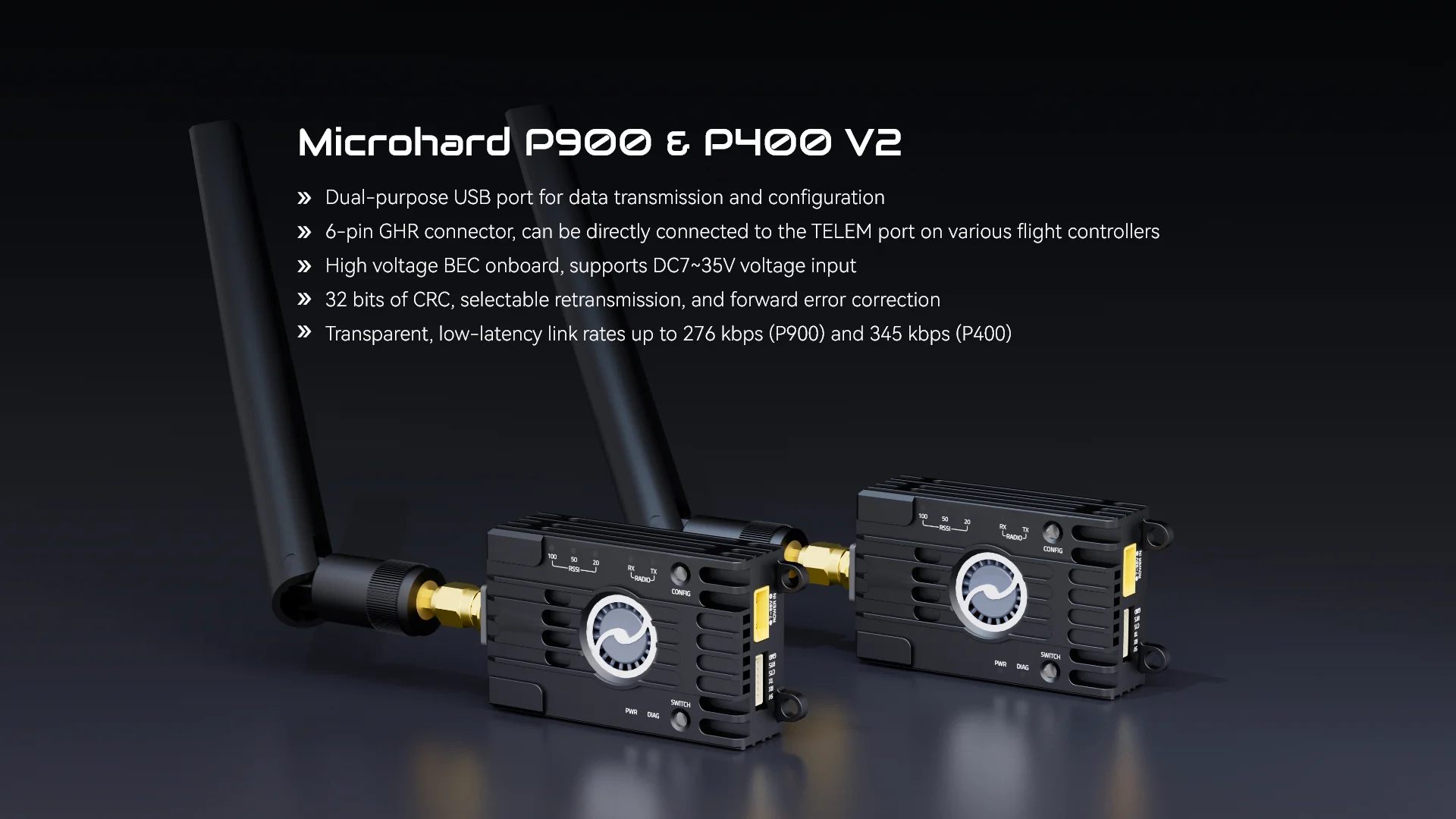 [P900 V2(シングル)] Holybro Microhard テレメトリー無線機 V2 P400/P900 FHSS 64km 276kbps MAVLink 7-35V JST-GH RC FPV 長距離用 S25o1577328080_0
