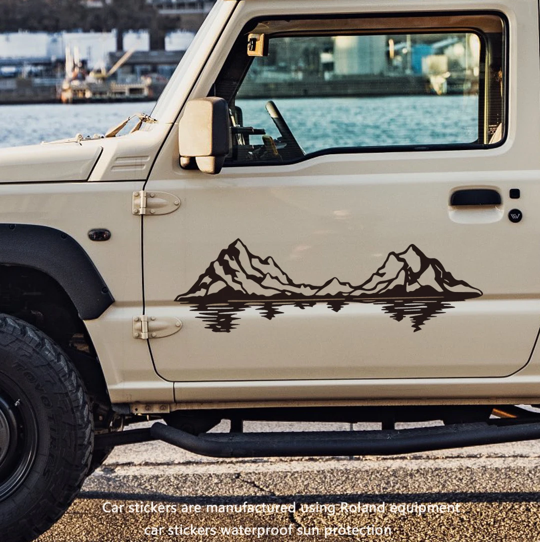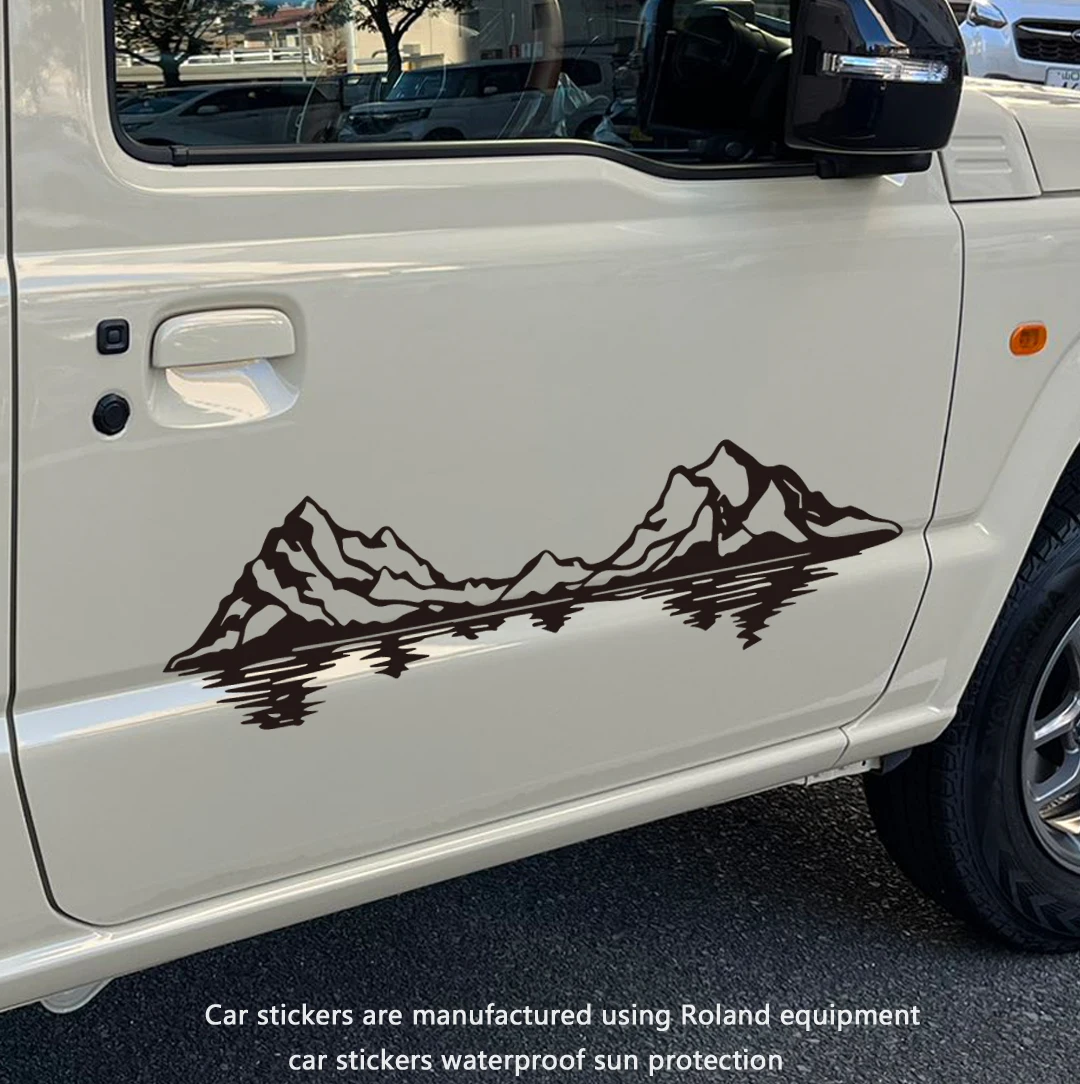 湖の景色を映し出す山のキャンピングカー/RVサイドウィンドウバンパーステッカーデカールステッカー装飾車ピックアップトラック用 S25d8514153032